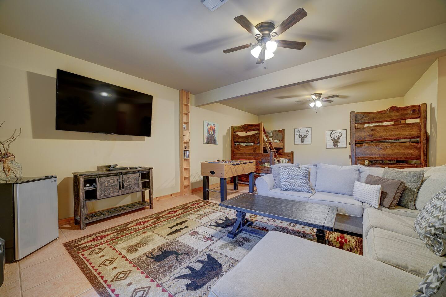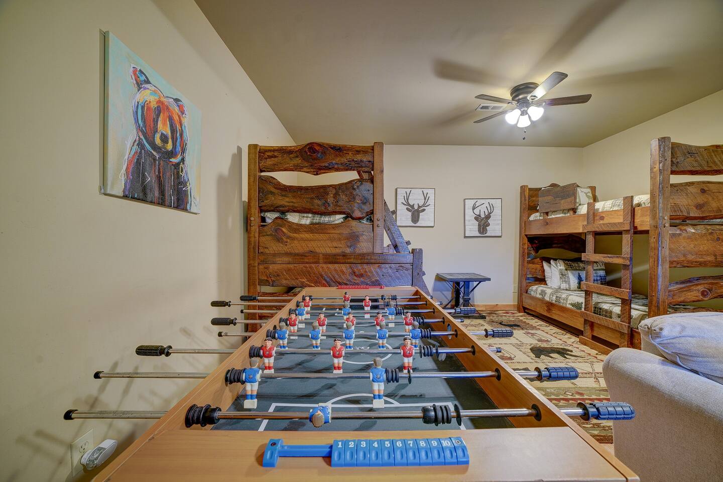 • Foosball, 60” Smart TV, plush sectional sofa, and bunk beds for endless entertainment.