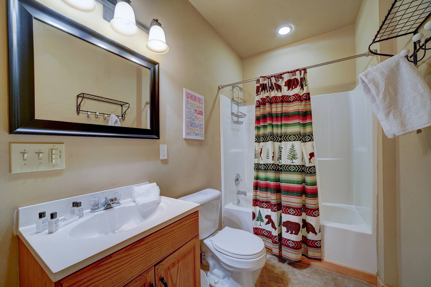 • Downstairs bath with a tub/shower combo and a ceramic top vanity.