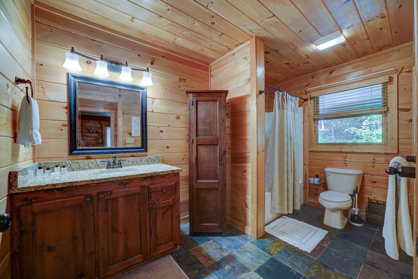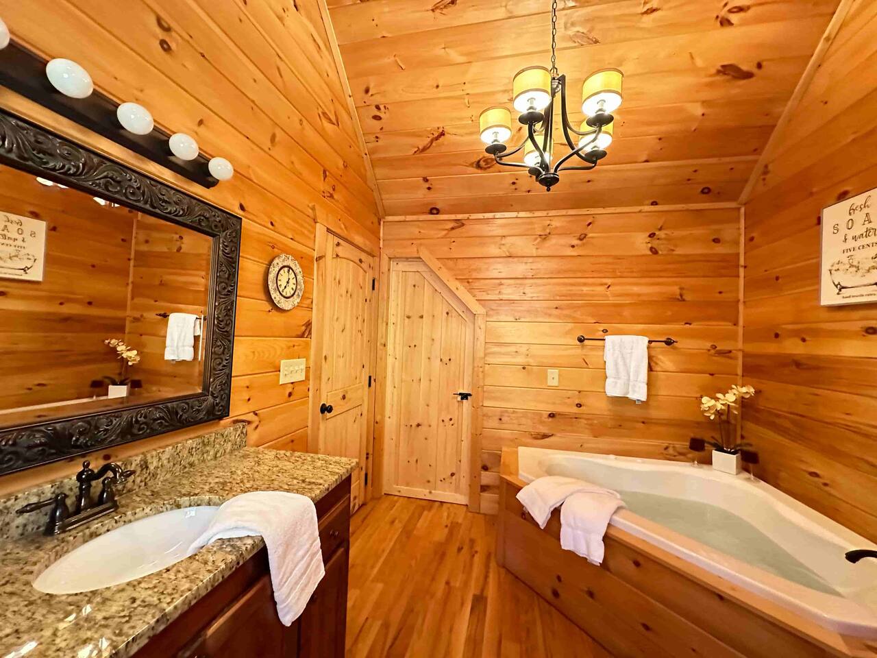 • No detail spared, from granite countertops in the kitchen to custom tile in the shower, evoking the charm of a beautiful lodge.