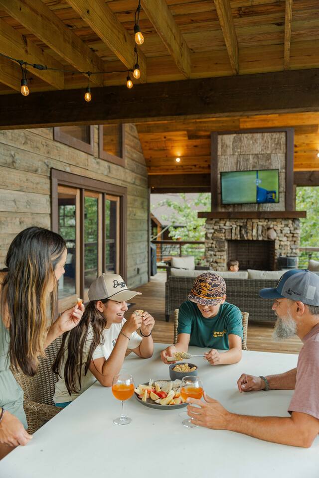 -Outdoor dining deck + covered lounge w/ fireplace & TV.