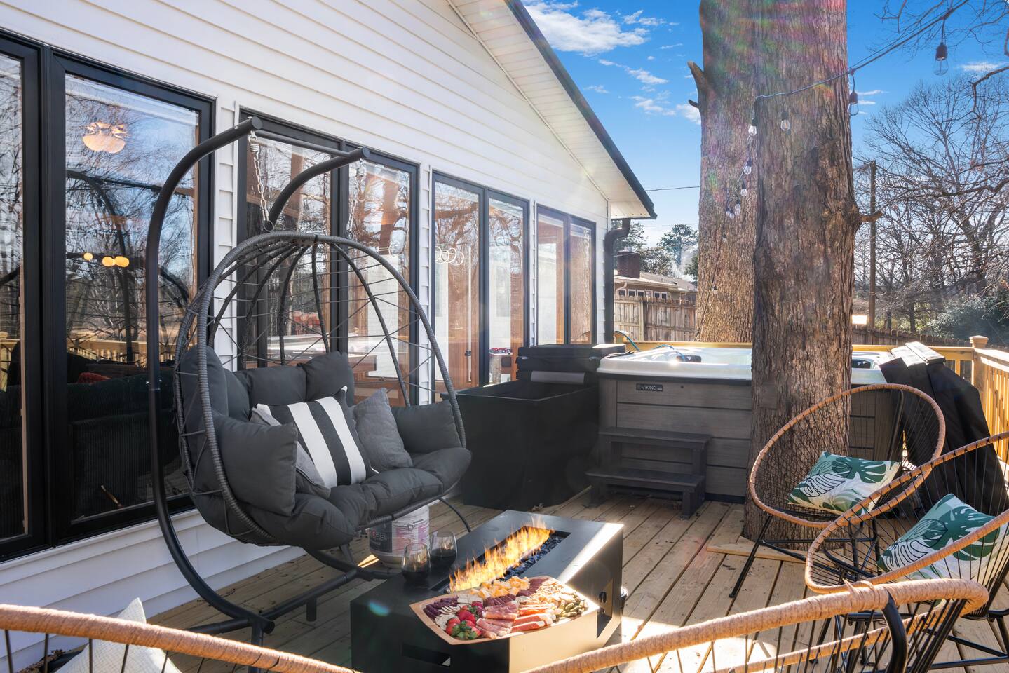 Multiple Seating Areas, including Swings by the River & on the Deck