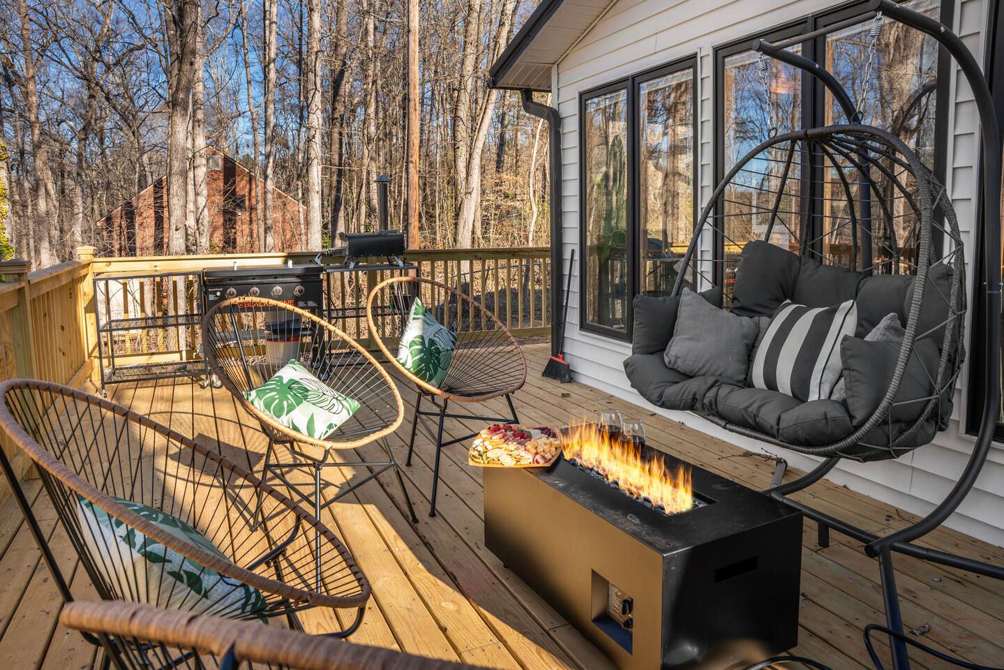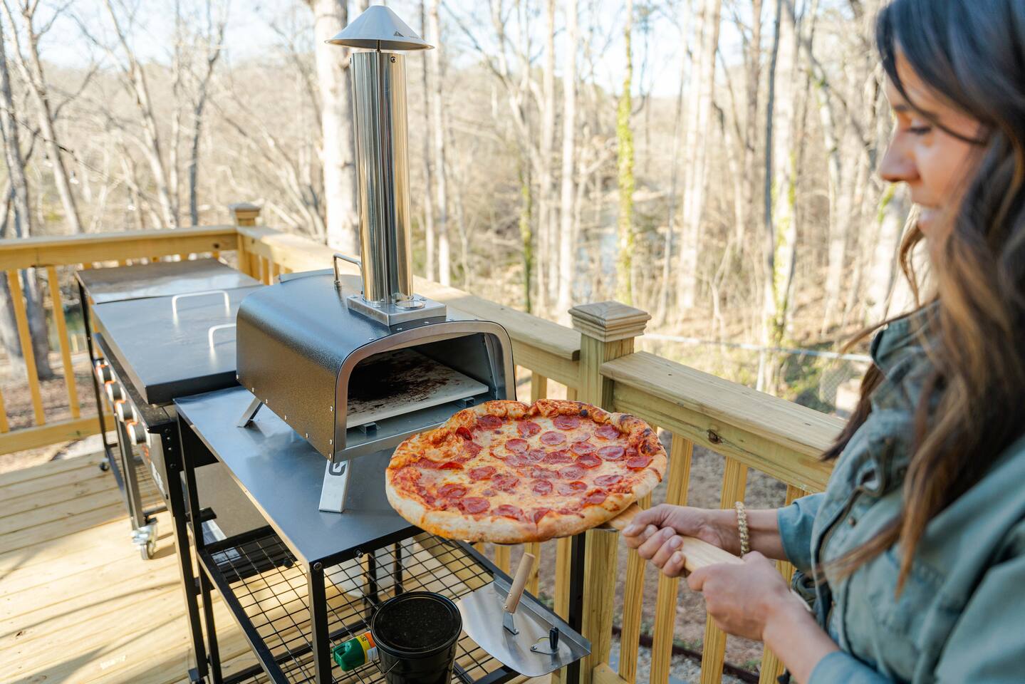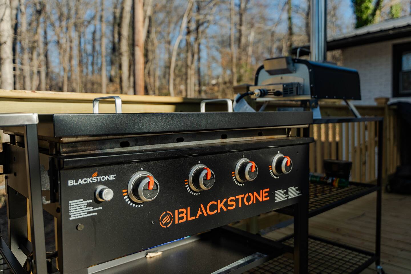 Spacious Deck with propane firepit for conveince & Outdoor Kitchen: Blackstone & Pizza Oven 🍕
