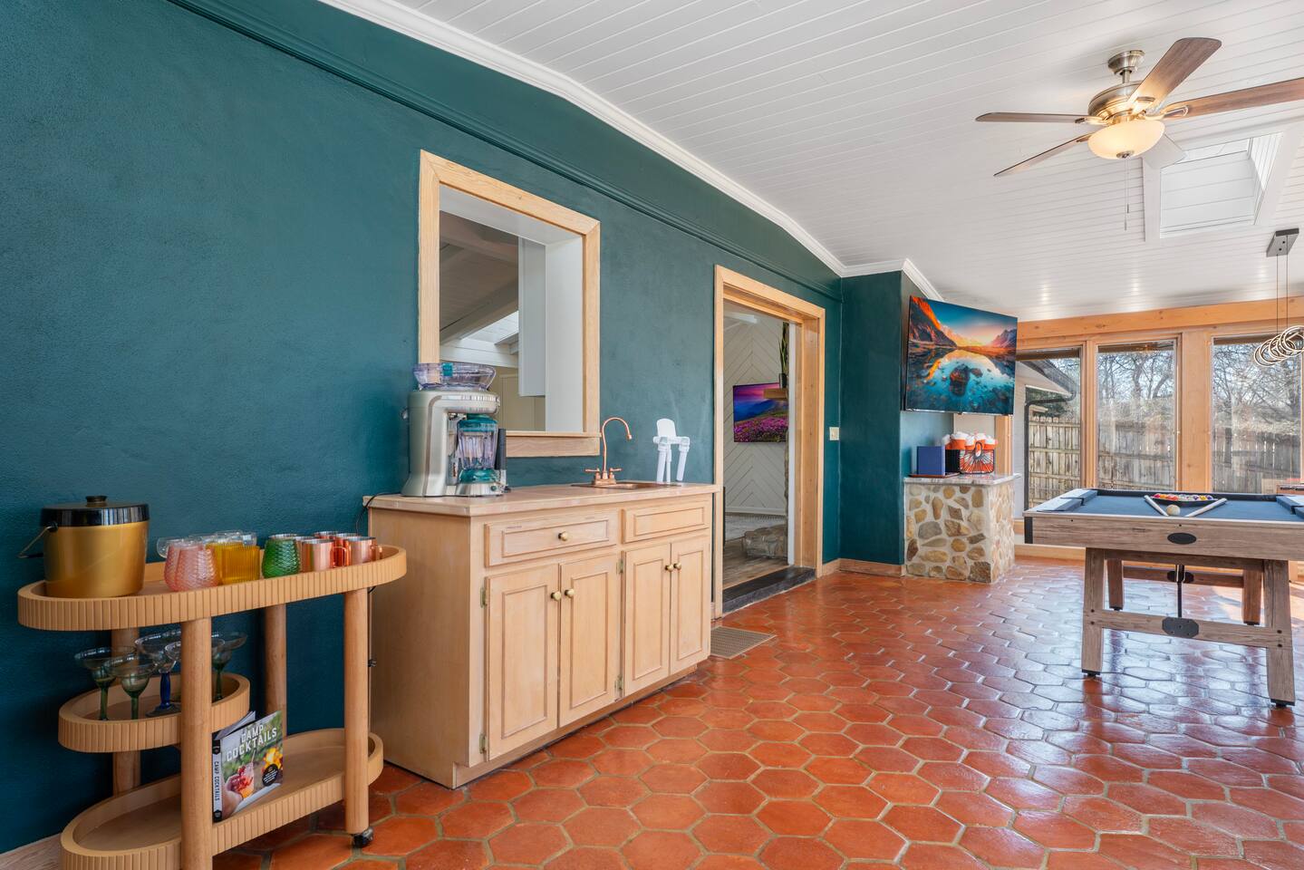 Great place with lots of things to do. This was perfect for my friend’s bachelorette weekend as it fit a group of 8 girls comfortably and there was plenty things to entertain us in the Air BnB. Kitchen is well stocked with multiple different appliances if you plan on cooking.