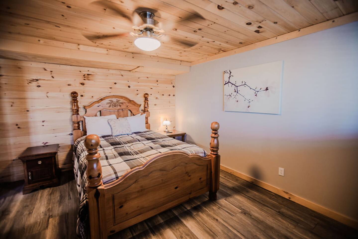 • Custom log beds, TVs, and ceiling fans for added comfort