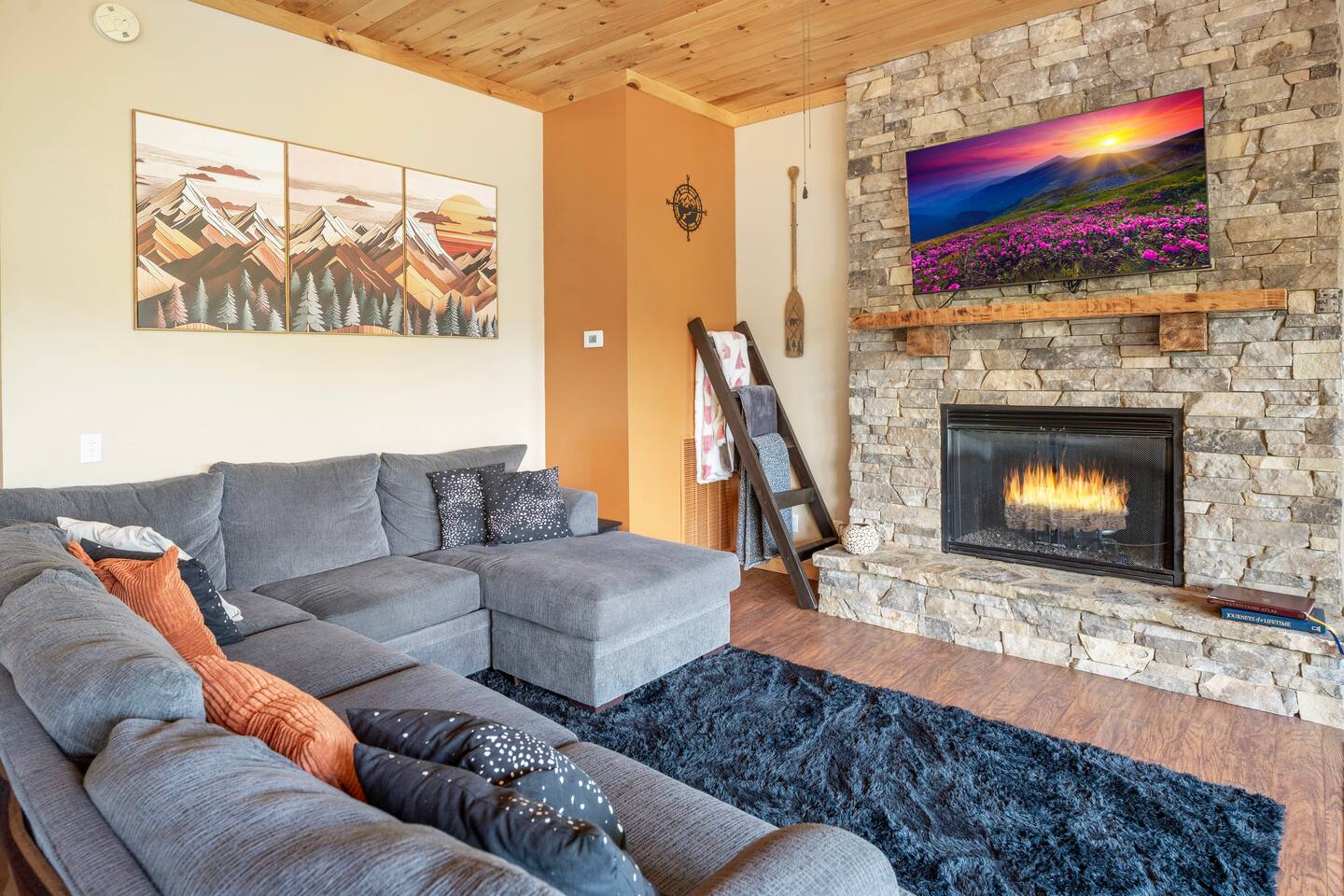 • Family Room with a grand fireplace and 55” Smart TV for cozy times.