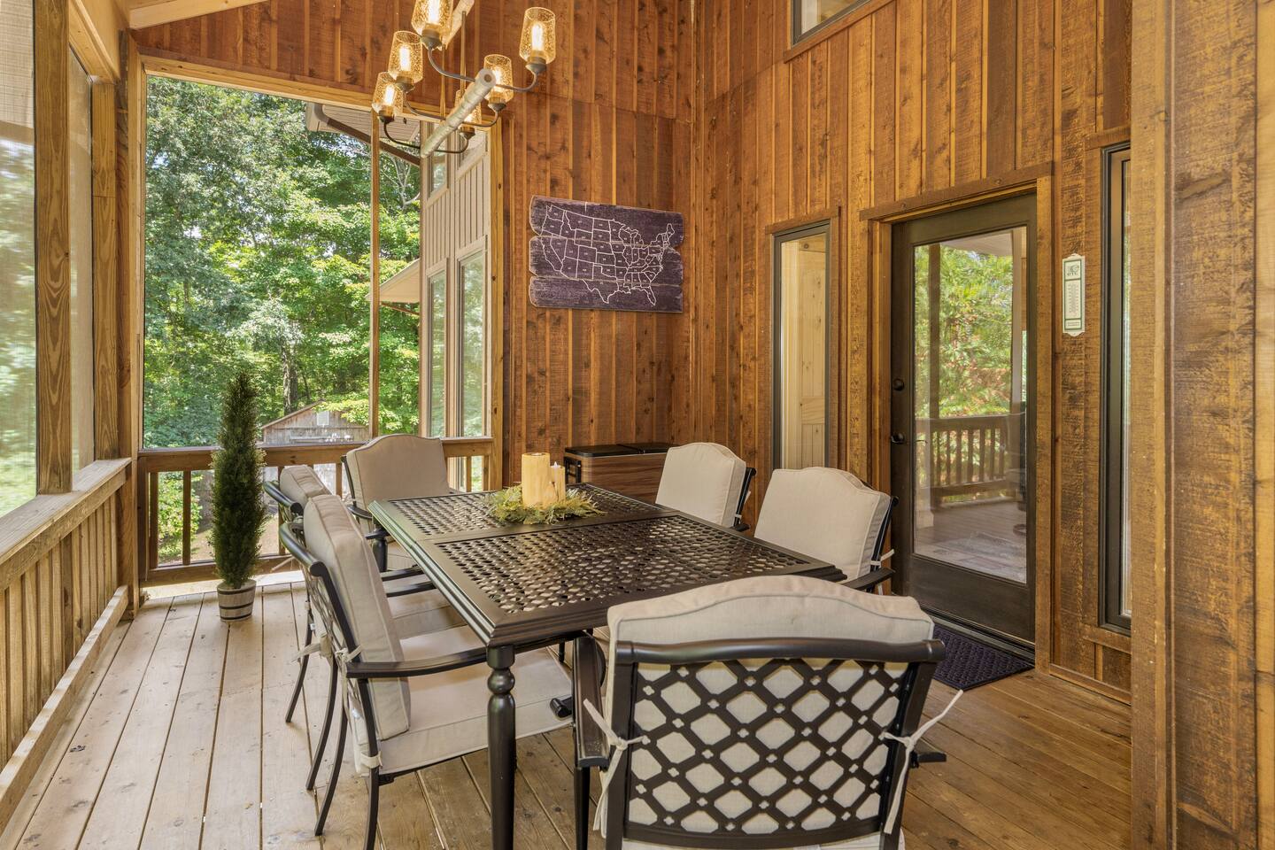 • Multiple screened-in porches, patio seating, and decks for a relaxing outdoor experience.